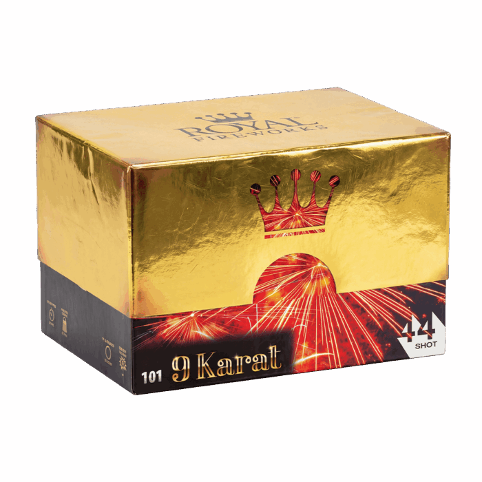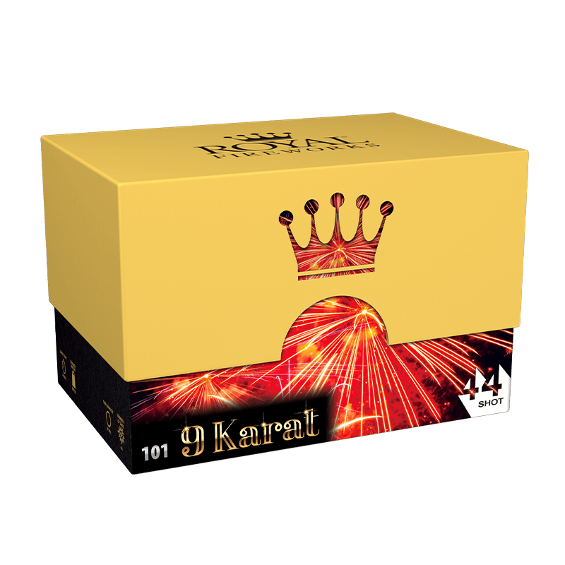 Gør din nytårsfest uforglemmelig med 9 Karat, vores eksklusive batteri designet til den kræsne fyrværker, der kun ønsker det bedste. Med imponerende 44 skud, som skyder lige op og i vifte, garanterer dette batteri action og power fra start til slut. Lad dig fortrylle af kraftige mørk guld palmer med blå stjerner, der skaber en imponerende kontrast på nattehimlen.