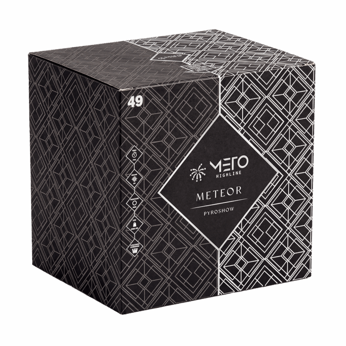 Meteor er et imponerende festfyrværkeri fra den eksklusive Meto-serie, kendt som toppen af poppen inden for fyrværkeri. Med 24 skud i kraftige 30 mm rør og et krudtindhold på 456 gram NEM, leverer Meteor en spektakulær oplevelse med samme effekt gennem hele batteriet. Dette giver et stilrent og kraftfuldt fyrværkeri-show, der vil lyse nattehimlen op og imponere alle omkring dig. Perfekt til at skabe en uforglemmelig nytårsfest med professionel stil og kvalitet.