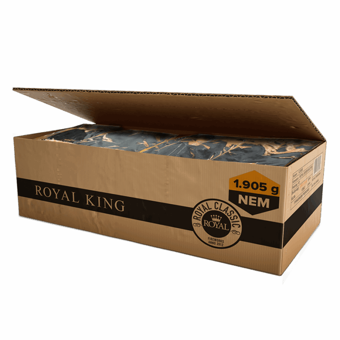 Royal King Compound 134 skud Lækkert kombinationsbatteri med masse af fede fyrværkerieffekter. Bærende effekter: Ti-gold palm to red white strobe;green red strobe;blue with green blink;silver crown;dark red green blue dahalia,bluelemon. Kaliber: 25/30 mm. NEM: 1905 gram