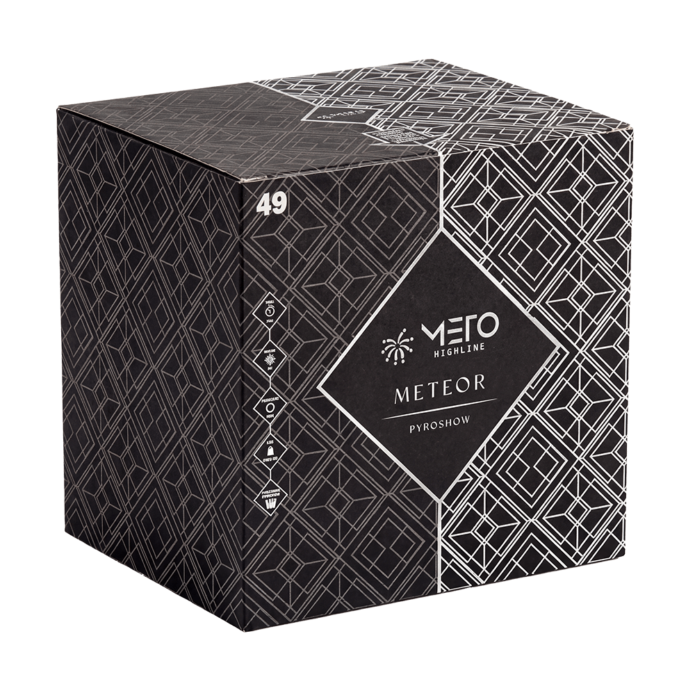 Meteor er et imponerende festfyrværkeri fra den eksklusive Meto-serie, kendt som toppen af poppen inden for fyrværkeri. Med 24 skud i kraftige 30 mm rør og et krudtindhold på 456 gram NEM, leverer Meteor en spektakulær oplevelse med samme effekt gennem hele batteriet. Dette giver et stilrent og kraftfuldt fyrværkeri-show, der vil lyse nattehimlen op og imponere alle omkring dig. Perfekt til at skabe en uforglemmelig nytårsfest med professionel stil og kvalitet.