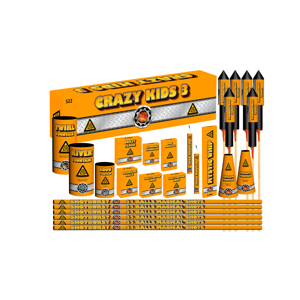 Kongen af sortimenter til junior-fyrværkeren - Her er garanti for underholdning hele aftenen med en god kombination af klassikere og nyere artikler der uden tvivl vil skabe lykke til enhver fest.