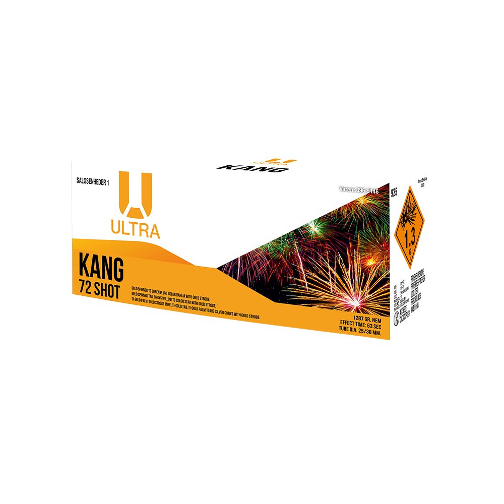 Avanceret show-batteri i dybe farver og elegant guld, hvor den konstante variation i tempoet giver en høj afveksling. Kang viser et imponerende udvalg af special-effekter og skiller sig derfor ud som et meget anderledes fyrværkeri-show.